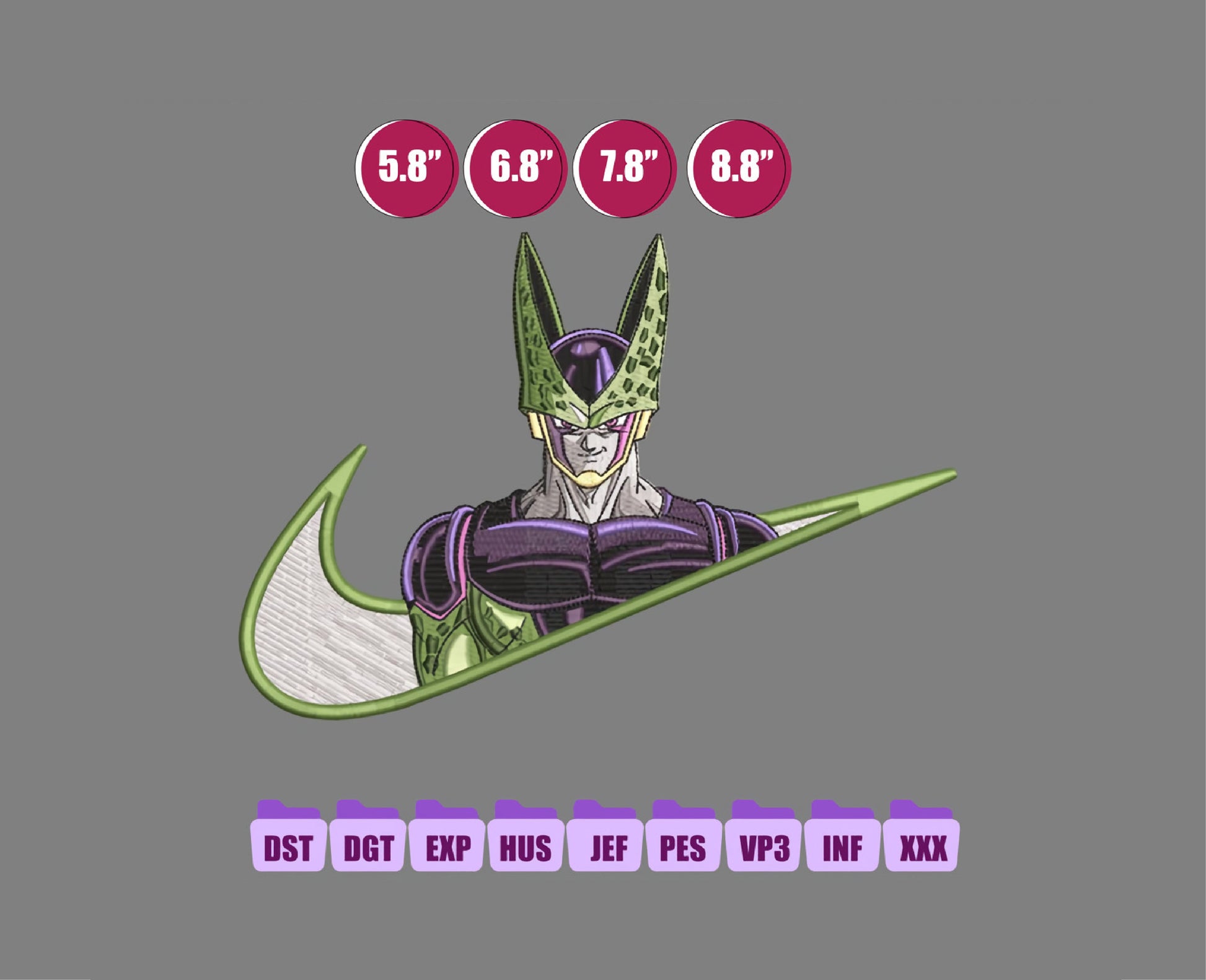 Cell Dragon Ball Anime Embroidery Design, Ni ke Anime Embroidery Designs 28